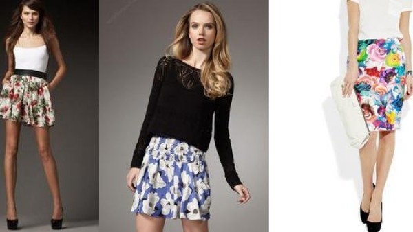 Ako vidíš v úvodnom obrázku, do módy sa vracajú obľúbené kvetinové motívy. Tento rok sa budú najviac nosiť na roztopašných krátkych sukniach s volánmi alebo áčkových strihoch.